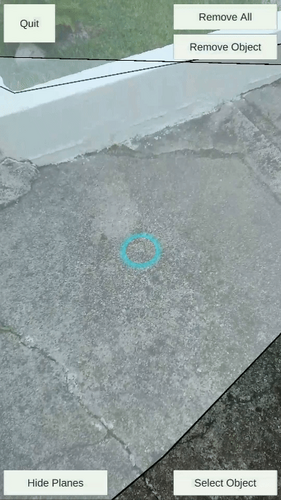 - Use the device camera to detect planes in real life (you can either show or hide them): a placement indicator will appear.